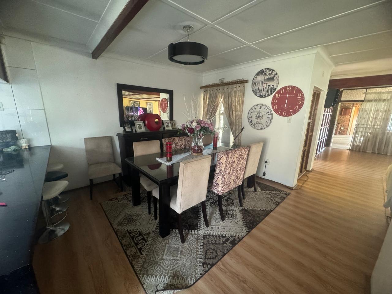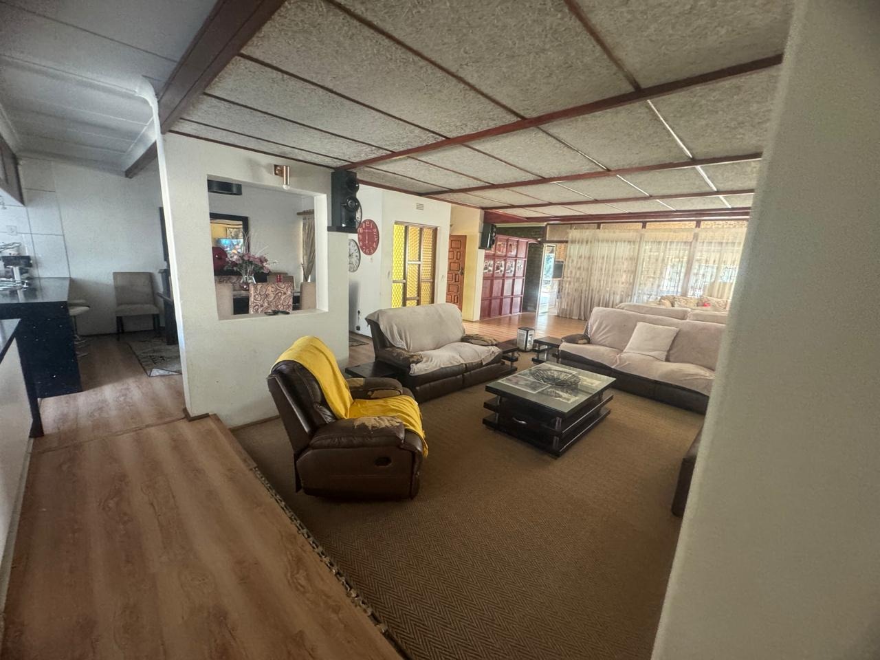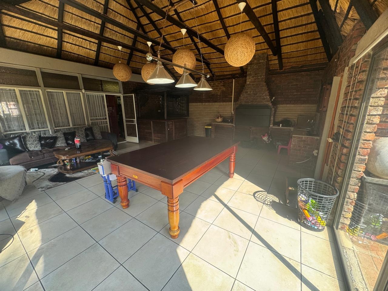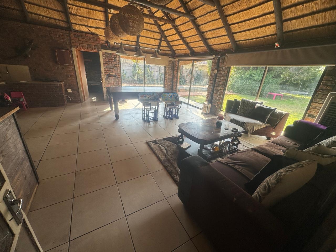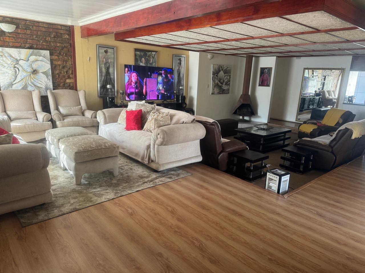 The open plan, lounge and dinning area is perfect for relaxing or entertainment. It conveniently offers - a study for work from home and closed Lapa with inside braai. The outsidebuilding consist of a storeroom, outside bathroom, outside bedroom with bathroom and laundry. Double garage and double carport.