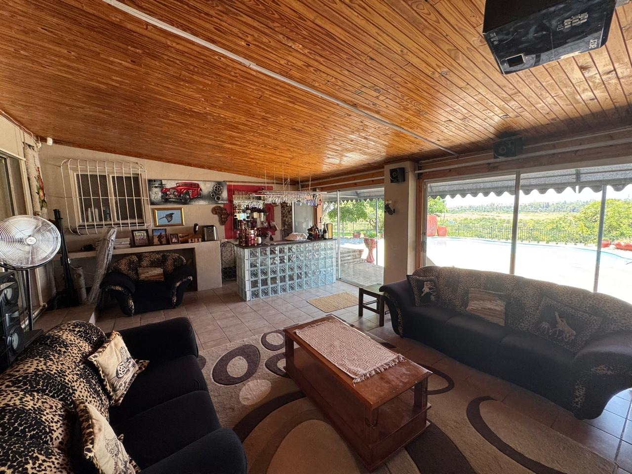Additional features include an extra lounge, 5 air conditioners, alarm system, cameras, borehole with pump, helper’s room with bathroom, shade-net parking, and a remote-controlled gate.