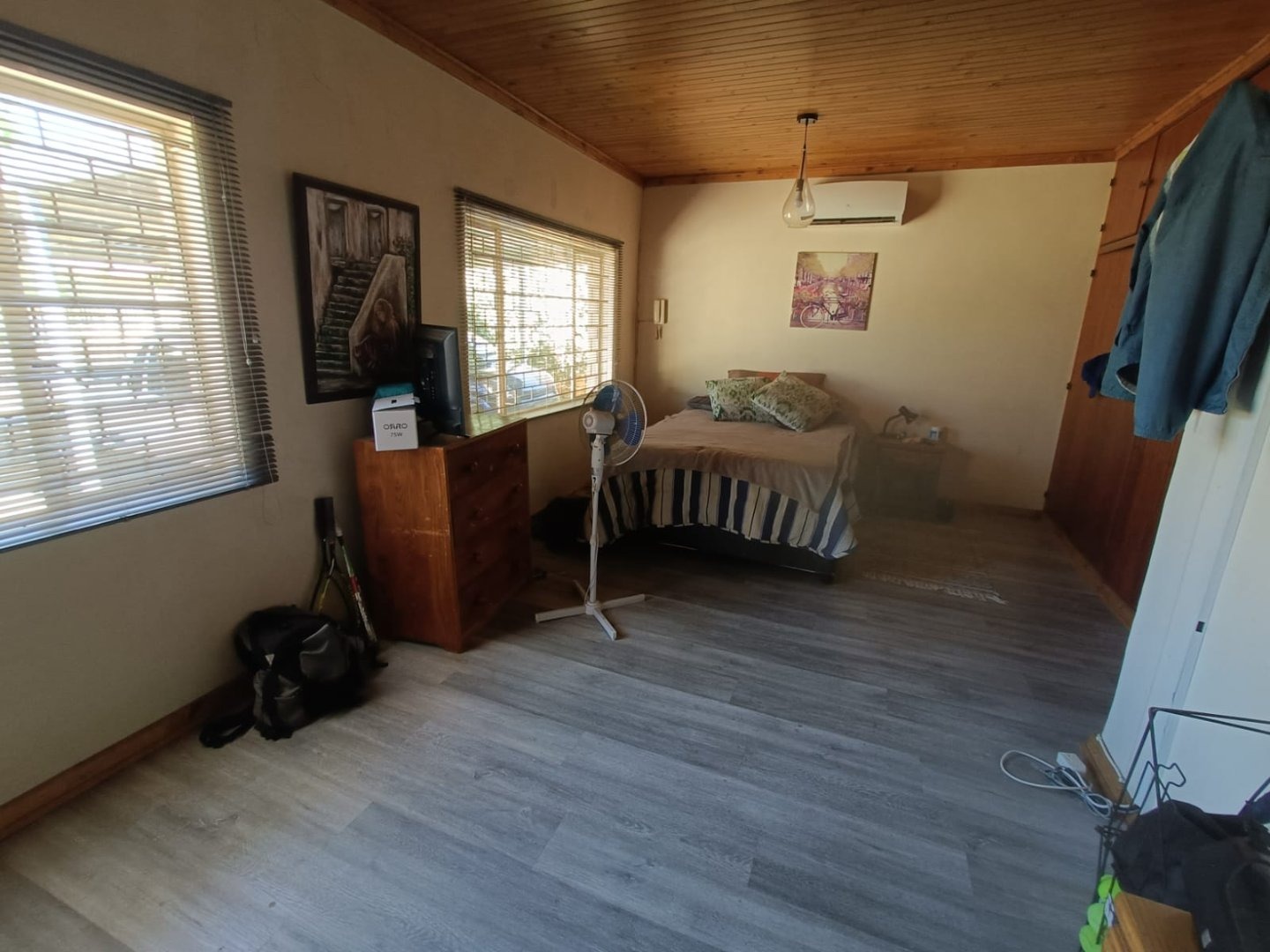 This property features 3 spacious bedrooms, all with built-in cupboards, and 2 well-appointed bathrooms one with a shower, toilet and basin, and the other with a bath, toilet and basin.