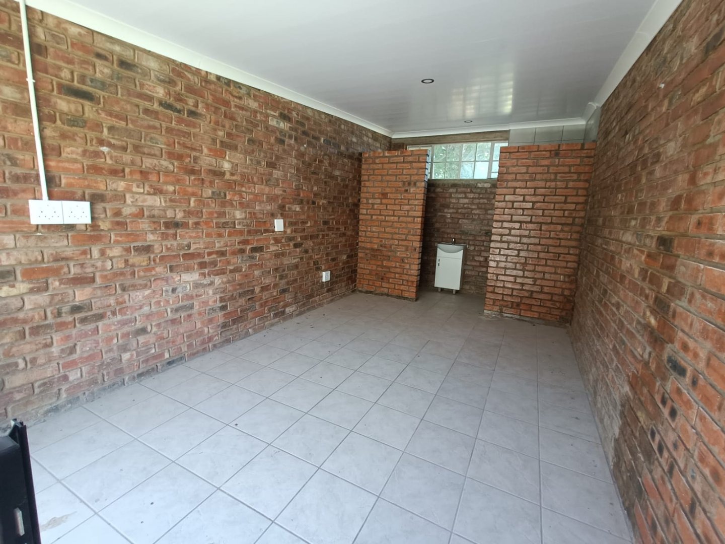 The indoor patio provides the perfect space for a home office or relaxation area.