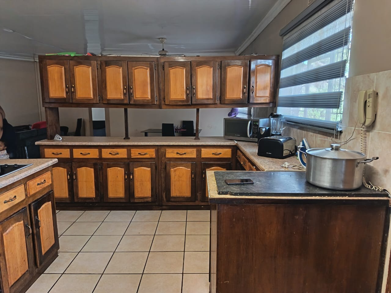 This warm family home features a spacious open-plan, lounge and dining area for comfortable living space.