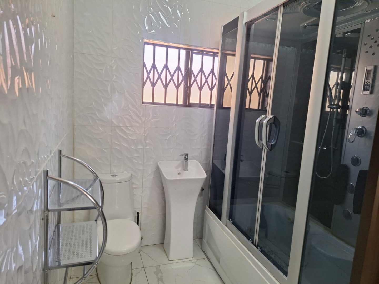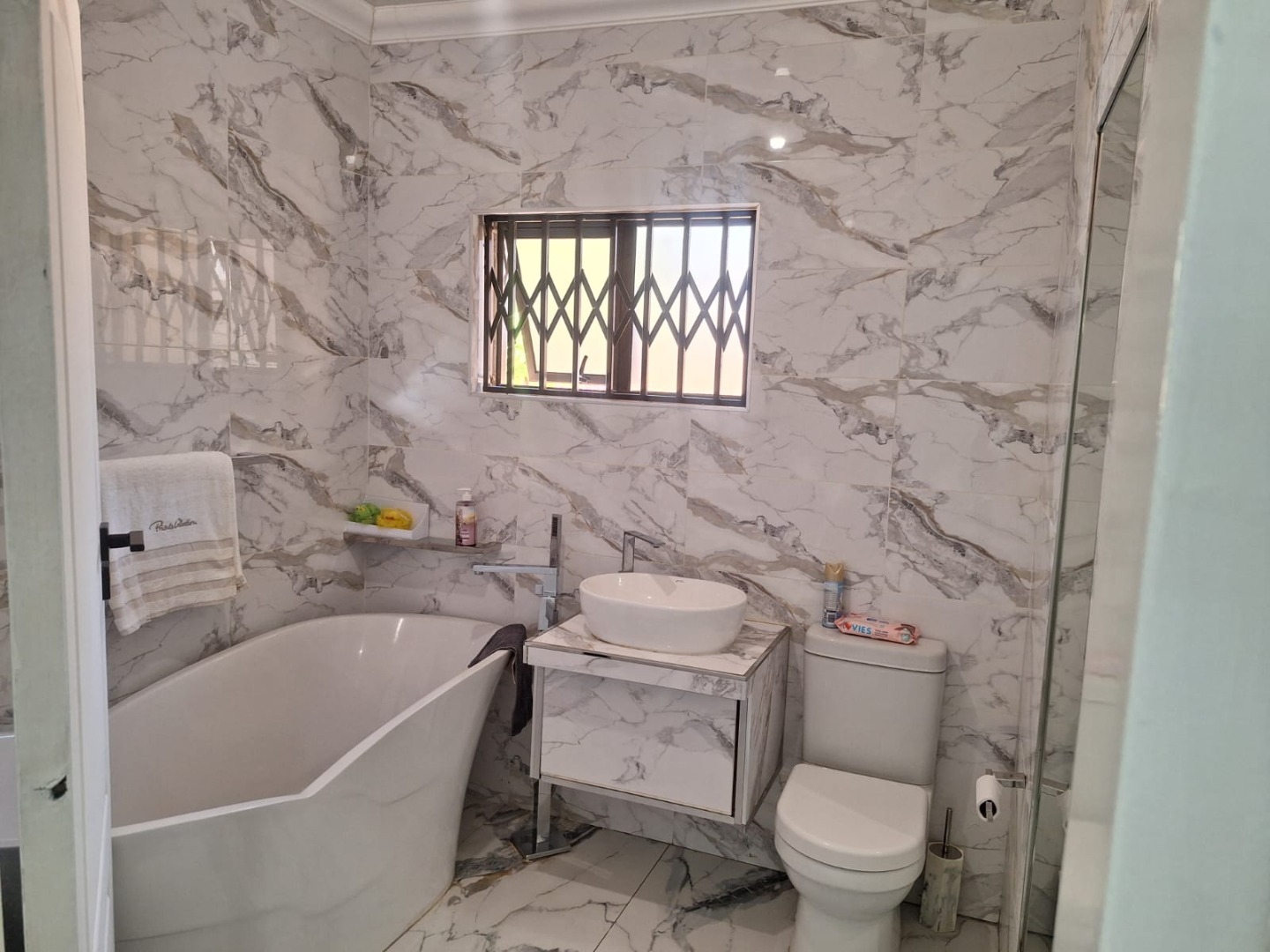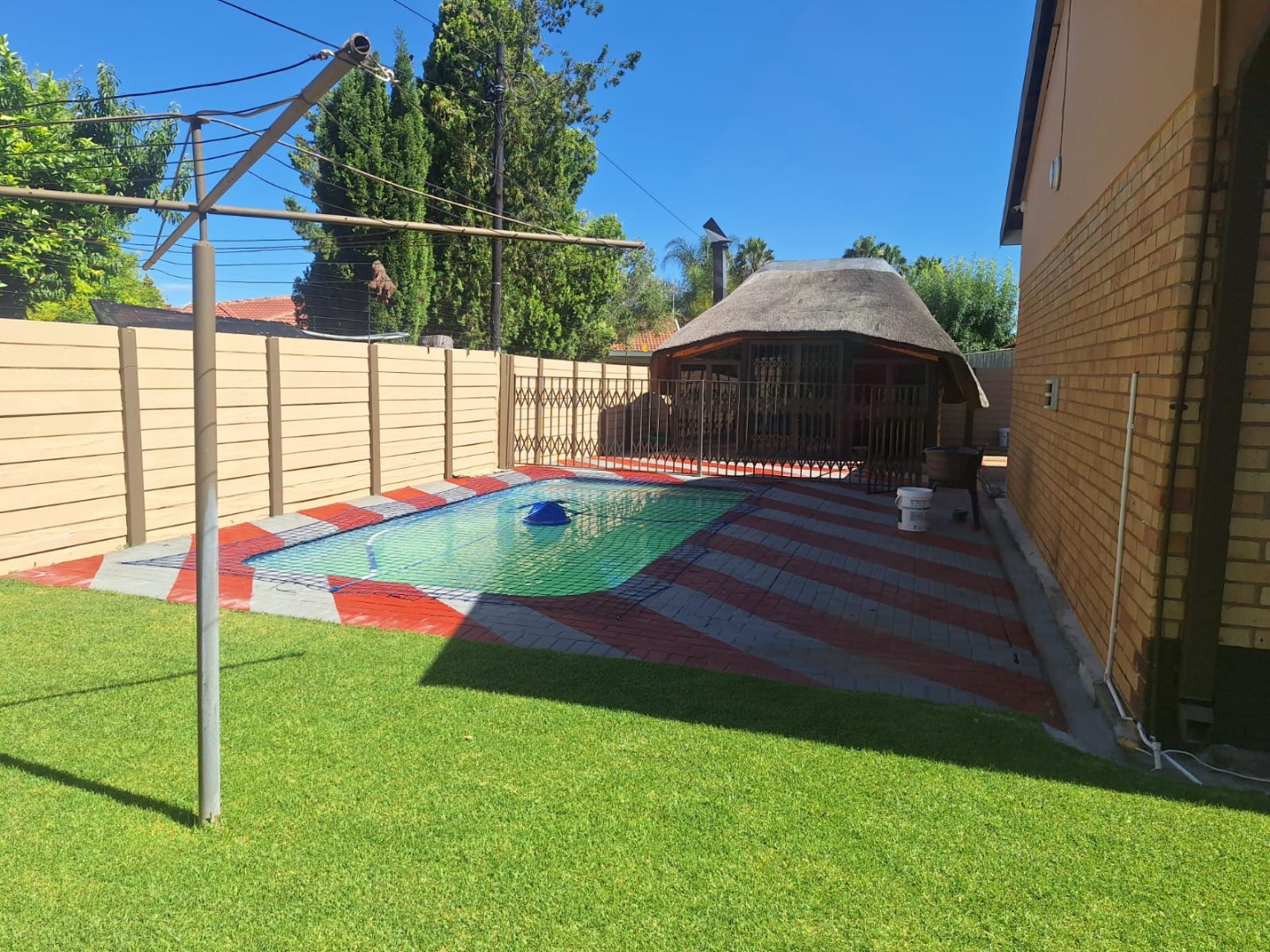 The property includes 3 well-sized bedrooms, a modern kitchen, lounge, and dining room. An entertainment room with a bar makes it ideal for hosting guests, while the jacuzzi with its own toilet adds a touch of luxury.